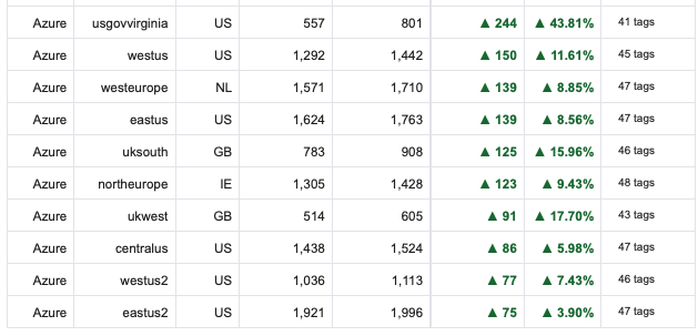 - Among the cloud hyperscalars, Azure made substantial expansions to its IP deployments led by the